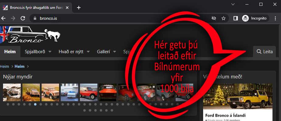 Ljósmyndir yfir 1000 Bronco bíla má nú finna á síðunni án innskráningar.