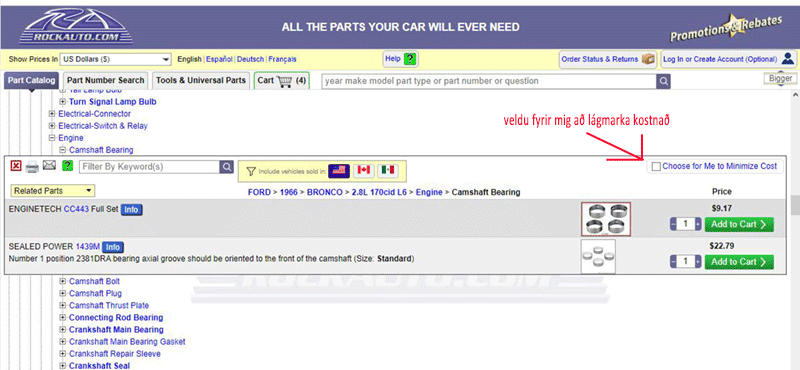 Ég mæli með því að menn láti senda beint til Íslands frá Rockauto en sendingarkostnaðurinn er yfirleitt með því lægsta sem gerist.